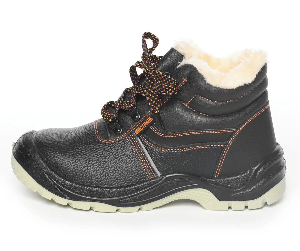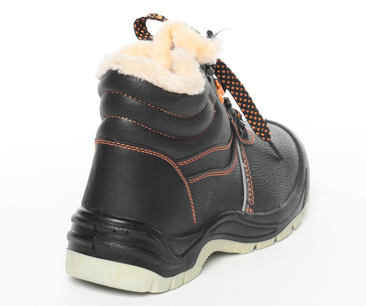 Верх обуви выполнен из натуральной кожи. Рабочая обувь из натуральной кожи долговечна, устойчива к повреждениям, комфортна в носке. Натуральная кожа обладает воздухопроницаемыми свойствами, не дает ногам потеть. Фиксируется обувь на ноге с помощью шнурков, которые плотно обхватывают стопу, улучшая комфорт ношения. Утеплитель из искусственного меха хорошо держит тепло, рассчитан на температурные режимы до -18 °C. Противоударный металлический подносок защищает от ударов в носочной части энергией 200 Дж. Металлическая антипрокольная стелька дополнительно защищает стопы ног от проколов, порезов, сильных ударов и прочих производственных травм.