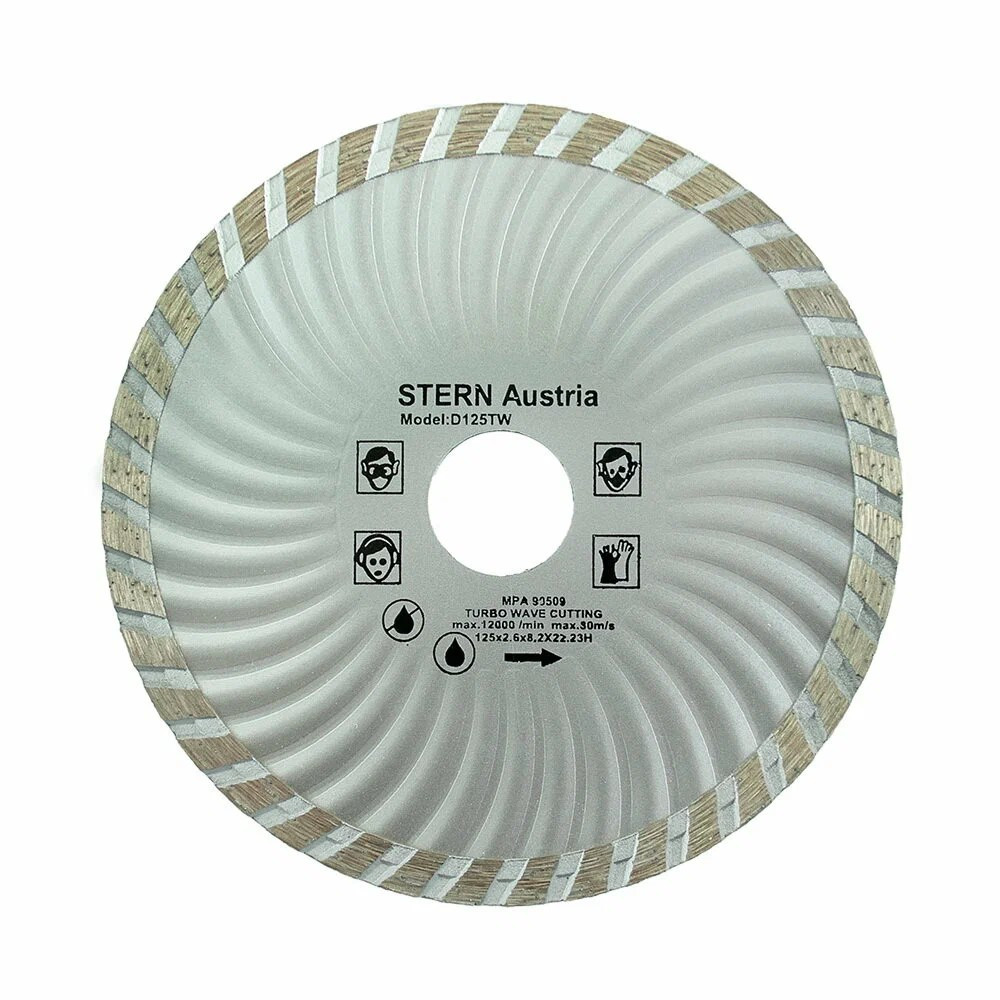 Алмазный диск "Stern" (волна) имеет диаметр 125 мм, посадочное отверстие 22,23 мм.