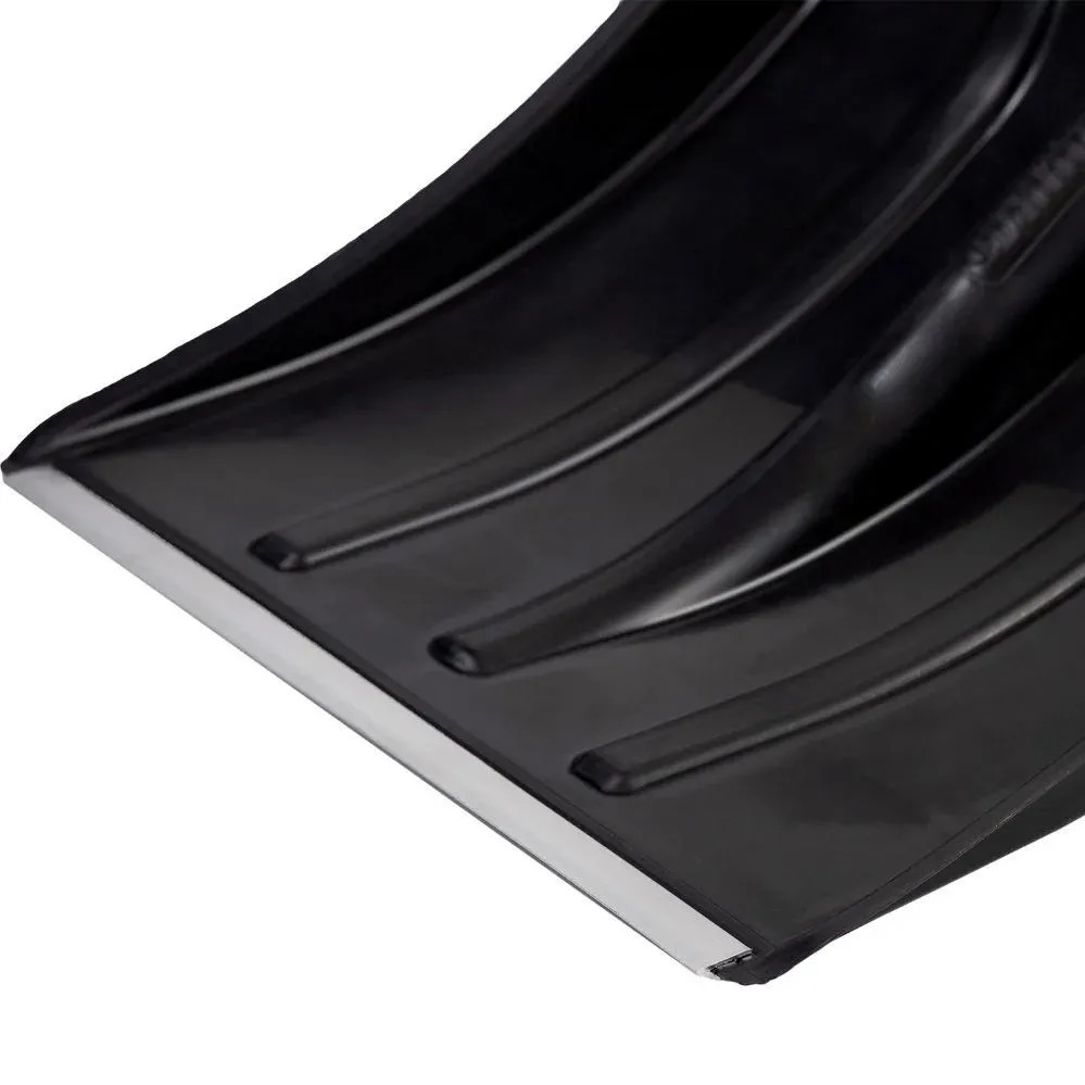 Пластиковый ковш снеговой лопаты обеспечивает легкость и удобство при чистке снега благодаря алюминиевой накладке.
