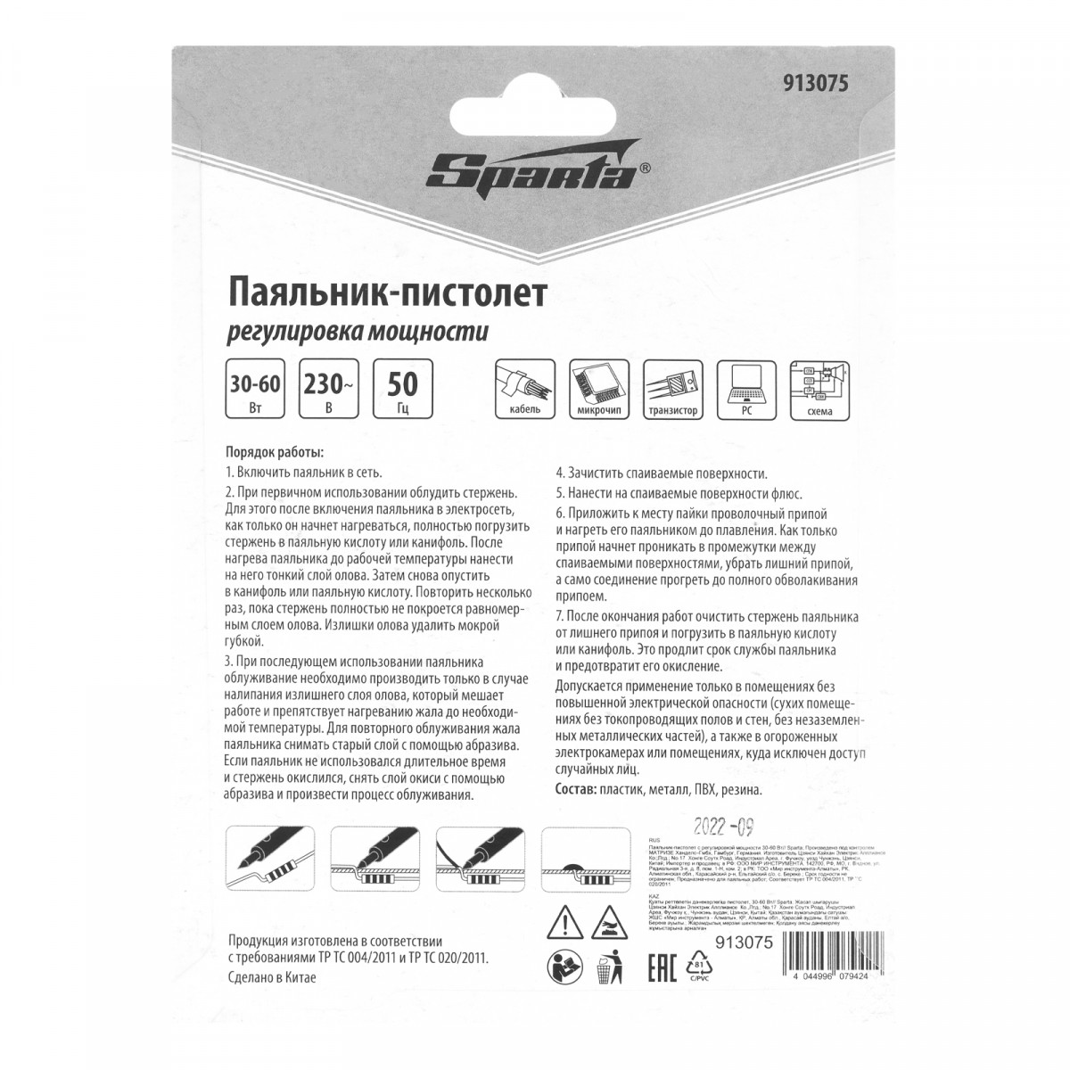 Паяльник-пистолет Sparta 913075 с регулировкой мощности 30-60 Вт питается от сети 220 В и предназначен для пайки микрочипов, транзисторов, электросхем, кабелей. Благодаря керамическому нагревательному элементу подходит для длительной непрерывной работы. Съемное жало может быть заменено в случае необходимости. Температура нагрева регулируется нажатием кнопки на рукоятке. Простой в применении прибор пригодится электромонтерам, радиолюбителям, автоэлектрикам, а также будет полезен в быту.