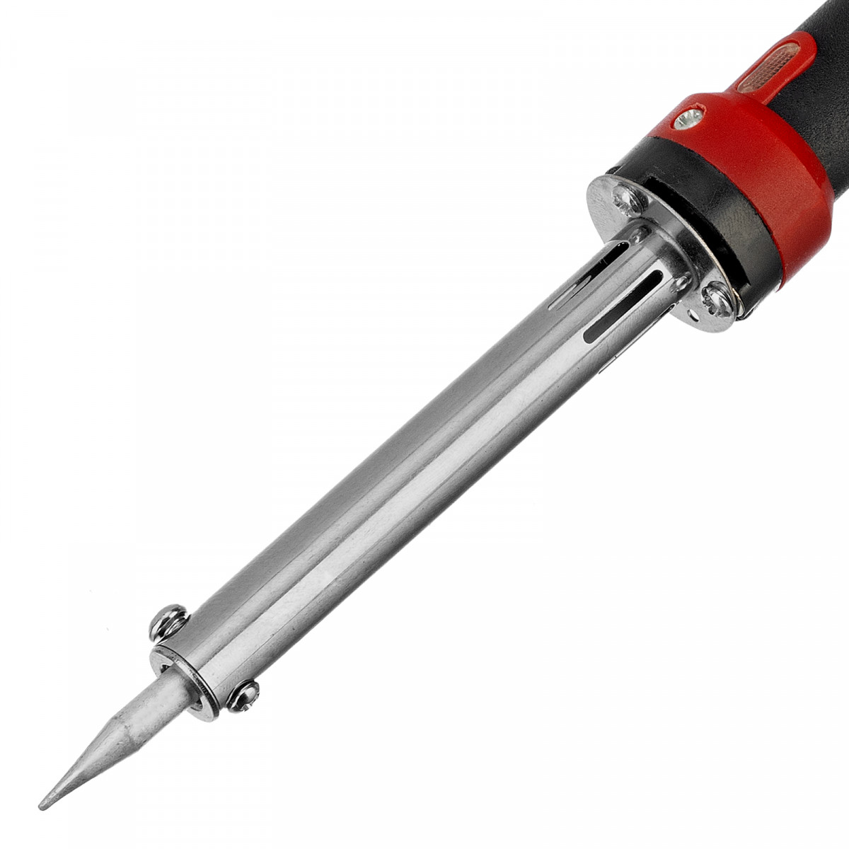 • Продолжительная работа с паяльником не вызывает усталость благодаря удобной пластиковой рукоятке с мягкой накладкой.