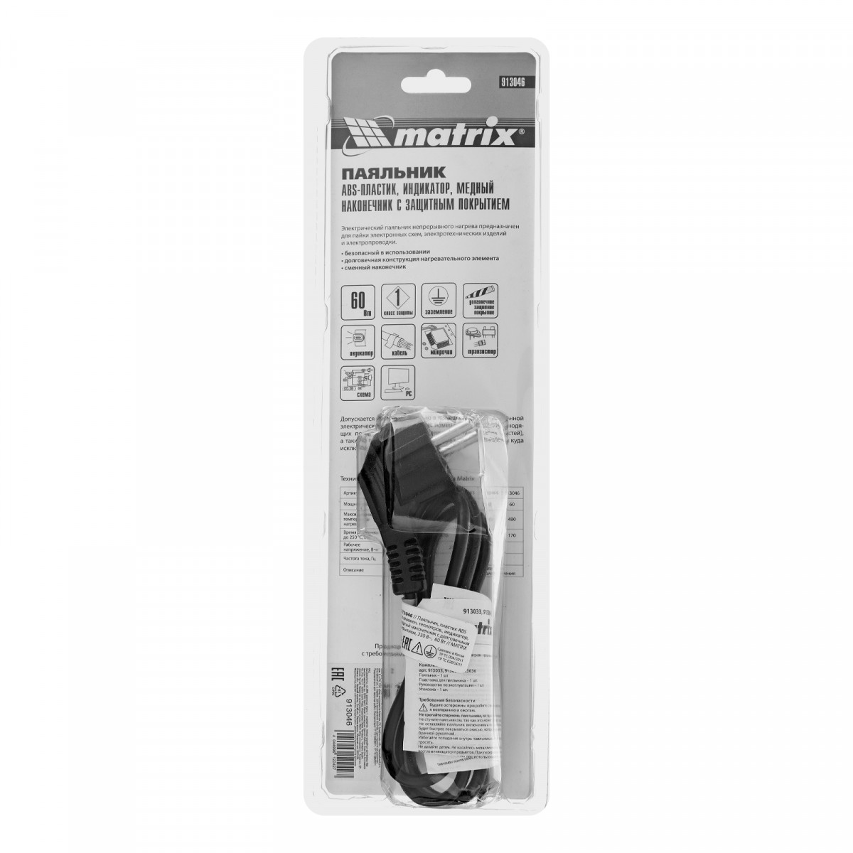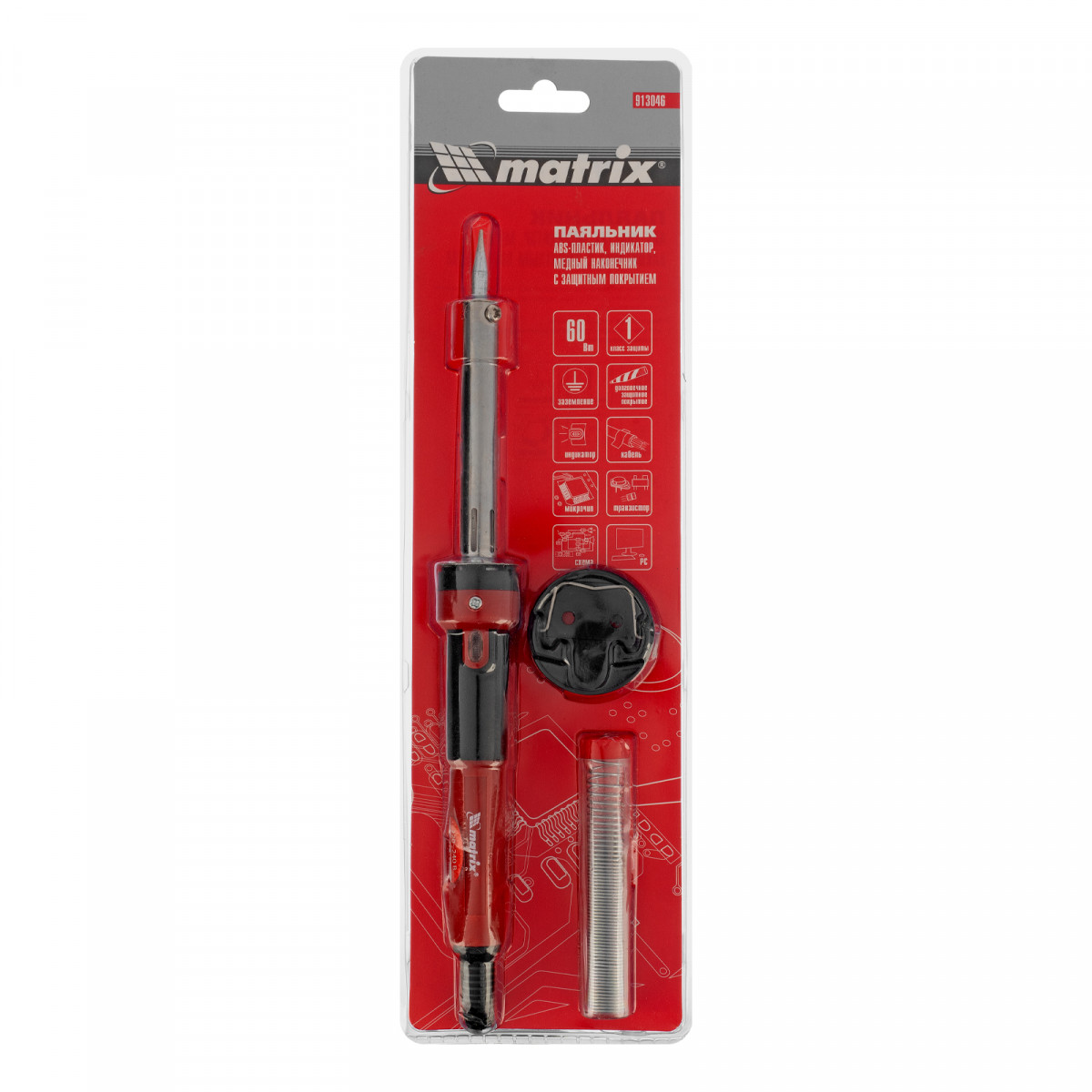 Паяльник, пластик ABS, класс защиты 1, индикатор, медный наконечник с долговечным покрытием, 220 В, 60 W Matrix