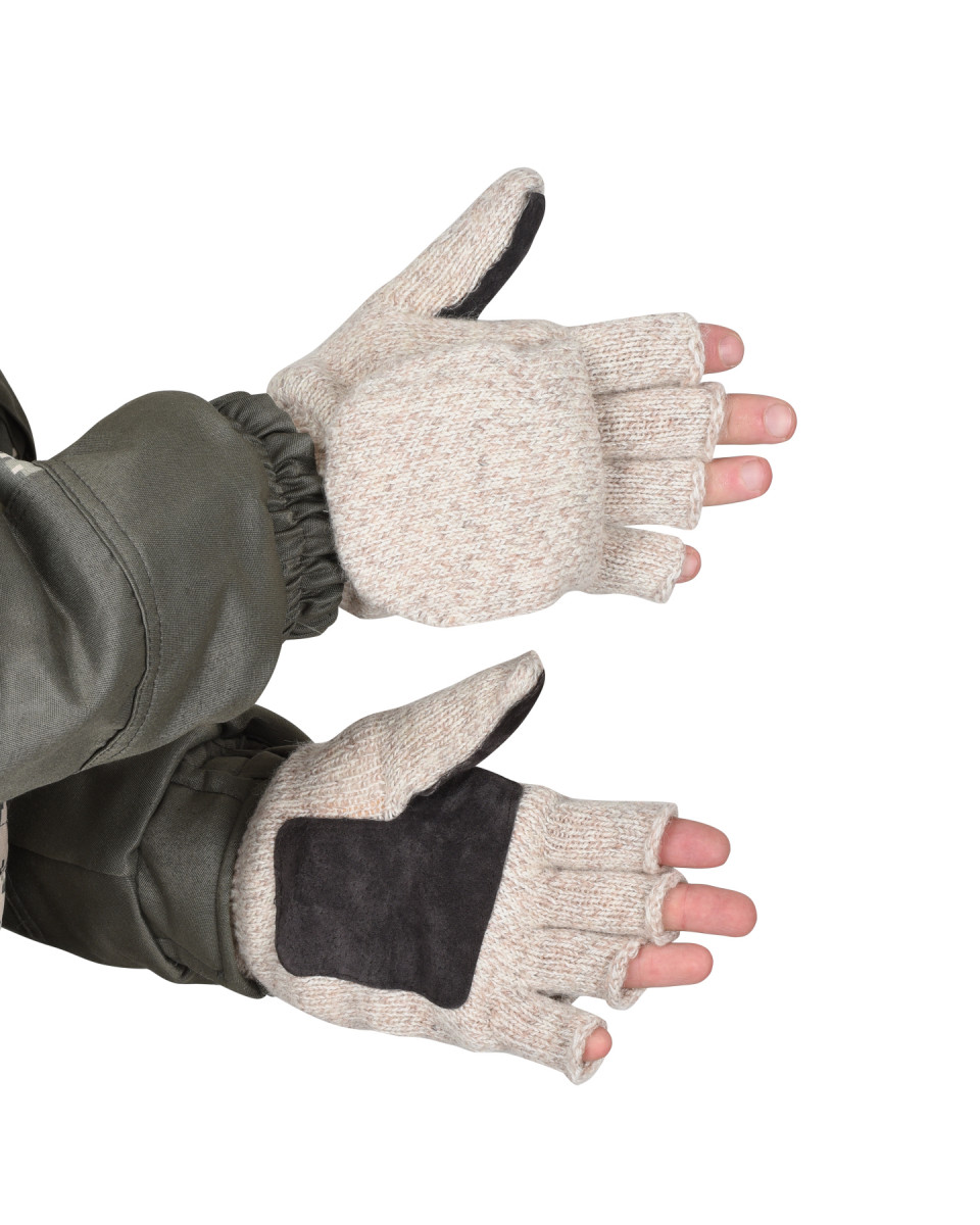 Перчатки из полушерстяной пряжи (шерсть 50%, акрил 50%) с утеплителем Тинсулейт С40 на флисовой подкладке, на ладонной стороне и пальцах с накладками из кожевенного спилка, на ладонной стороне с накладками из кожевенного спилка.
