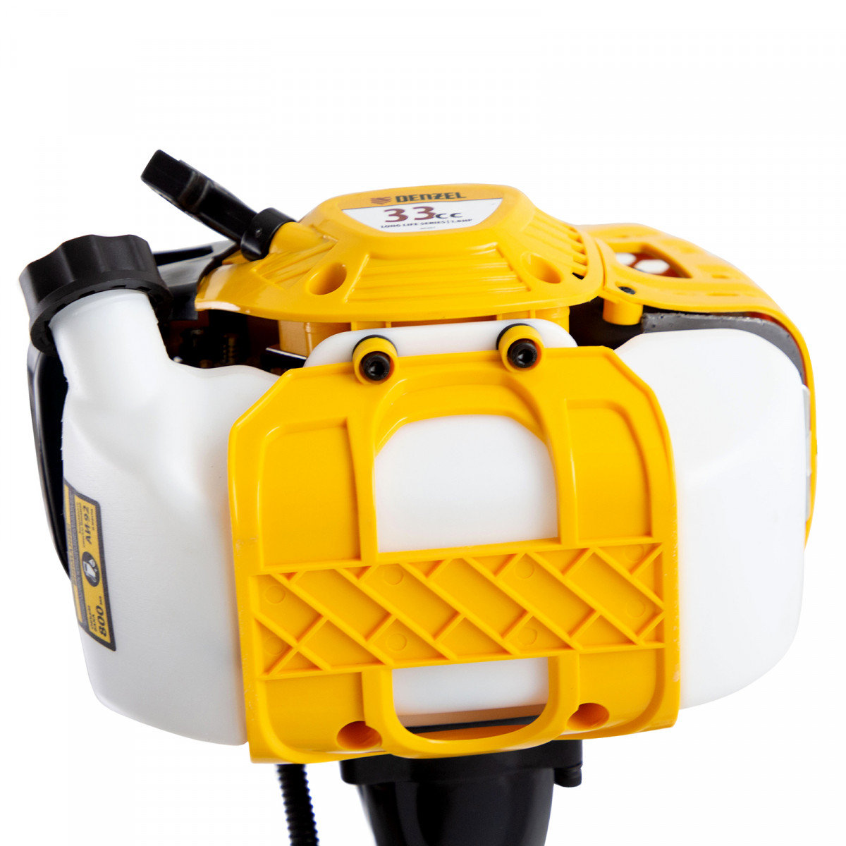 Бензиновый триммер Denzel DTL-33 96261 с объемом двигателя 33 см3 и неразъемной штангой подходит как для частичного подравнивания газона, так и скашивания травы всех типов, в том числе с жесткими древовидными стеблями (полыни, крапивы, лебеды, борщевика). Также эффективен для срезания кустарника и молодых побегов деревьев с диаметром стволов до 10 мм. Два режущих инструмента — леска и пильный диск — работают на скорости 9500 об/мин и обеспечивают ширину скашивания 42 и 25,5 см соответственно. Двигатель мощностью 1,8 л.с. экономично потребляет топливо, поэтому часто заправлять бак не придется. Триммер не требует подключения к стационарному источнику питания и может использоваться в самом отдаленном уголке дачного участка.